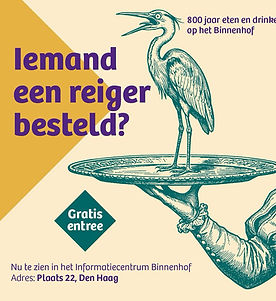 De tentoonstelling "800 jaar eten en drinken op het Binnenhof” toont unieke vondsten, zoals een tonijnwervel uit de 15e eeuw, een middeleeuwse reigerschedel, eeuwenoude Jacoba-kannetjes en stapels oesterschelpen. Samen met verhalen van Binnenhofbewoners geven ze een beeld van wat er door de eeuwen heen op tafel stond.